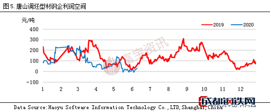 山鋼廠理論盈利空間窄幅回漲。截至6月19日,唐山鋼坯型材廠家理論盈利為32元/噸,較上周增長30元/噸。