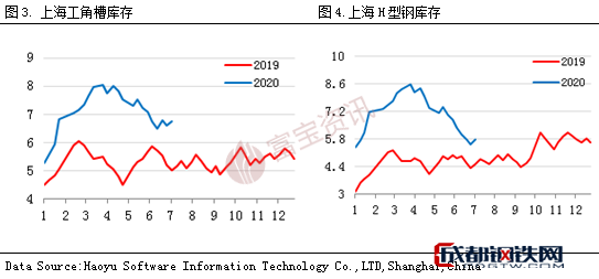 據(jù)2020年6月19日對上海市場型材倉庫進(jìn)行的同口徑調(diào)查統(tǒng)計顯示,工角槽庫存6.75萬噸,較上周增加0.16萬噸,