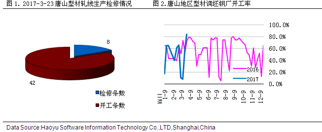唐山型材鋼廠(chǎng)開(kāi)工率攀升至較高位置。據(jù)成都鋼鐵網(wǎng)3月23日統(tǒng)計(jì),34家型廠(chǎng)50條生產(chǎn)線(xiàn)開(kāi)工42條,較上周增加16條,開(kāi)工率為84.00%,較上周上升了28.68%。 三、市場(chǎng)庫(kù)存概覽