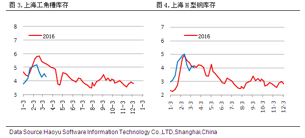 據(jù)2017年3月24日對(duì)上海市場(chǎng)型材倉(cāng)庫(kù)進(jìn)行的同口徑調(diào)查統(tǒng)計(jì)顯示,工角槽庫(kù)存4.34萬(wàn)噸,較上周減少0.21萬(wàn)噸,H型鋼庫(kù)存4萬(wàn)噸,較上周減少0.15萬(wàn)噸。 四、鋼廠(chǎng)盈利空間分析