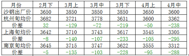 沙鋼均價(jià)大約在3300元/噸左右,而沙鋼上旬指導(dǎo)價(jià)為3600元/噸,倒掛幅度相比上旬明顯增加,旬內(nèi)具體價(jià)格走勢詳情如下圖所示。