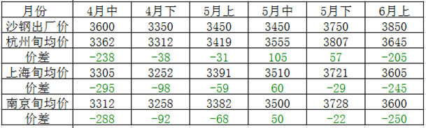 沙鋼均價大約在3610元/噸左右,而沙鋼上旬指導價為3850元/噸,旬內(nèi)具體情況如下圖所示。
