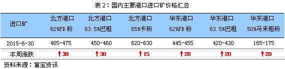 鐵礦385-385元/噸、65%卡拉加斯粉570-580元/噸;目前成品