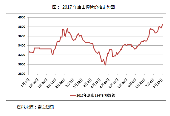 友發(fā)4寸*3.75焊管報(bào)3850元/噸,同樣創(chuàng)下2017年以來(lái)最高價(jià)。