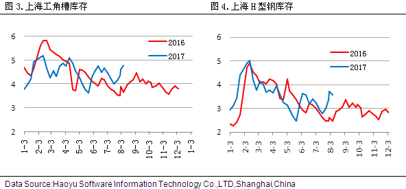 據(jù)2017年8月25日對上海市場型材倉庫進行的同口徑調(diào)查統(tǒng)計顯示,工角槽庫存4.79萬噸,較上周持平,H型鋼庫存3.57萬噸,較上周持平。 四、鋼廠盈利空間分析