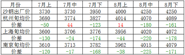 沙鋼均價(jià)大約在4020元/噸左右,而沙鋼上旬指導(dǎo)價(jià)為4250元/噸,旬內(nèi)具體情況如下圖所示。