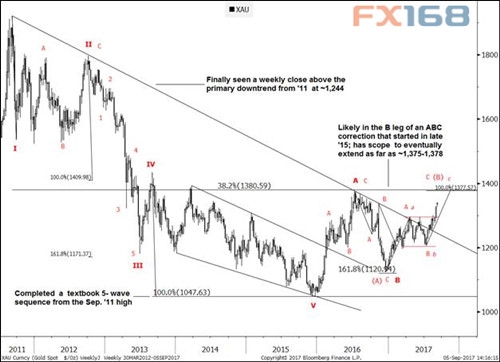該報(bào)告總結(jié)道:“偏于上行。目標(biāo)位于1375-1380,在回調(diào)向1300而不低于1296時(shí)增持?!?/p>