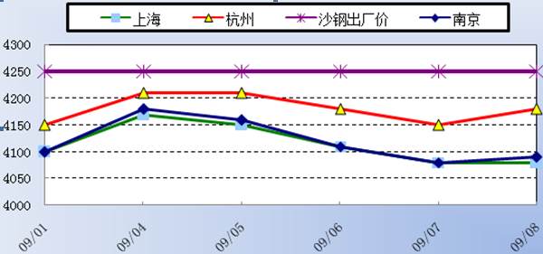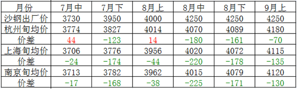 沙鋼均價(jià)大約在4115元/噸左右,而沙鋼上旬指導(dǎo)價(jià)為4250元/噸,旬內(nèi)具體情況如下圖所示。
