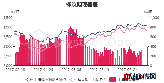 9月15日螺紋鋼主力收盤價(jià)為3805元/噸,期現(xiàn)基差為380.57元/噸