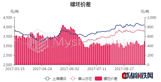 9月15日螺紋鋼主力收盤價(jià)為3805元/噸,期現(xiàn)基差為380.57元/噸。今日期螺1801全天震蕩下跌,現(xiàn)3805跌1.93%,大幅減倉(cāng)。就現(xiàn)今的市場(chǎng)來看,一方面,鋼廠為保證高利潤(rùn),指導(dǎo)