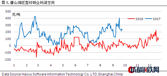 山鋼廠理論盈利空間依然處于高位。截至9月29日,唐山調(diào)坯型材廠家理論盈利空間為232元/噸,較上周同期下降了170元/噸。
