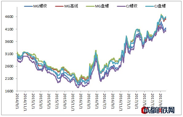 鋼廠快訊:10月12日MG建材掛牌價格螺紋鋼下調(diào)20元/噸,盤螺下調(diào)10元/噸,現(xiàn)螺紋鋼4090元/噸,盤螺4550元/噸,高線4490元/噸。MCJ安徽地區(qū)建材掛牌價格螺紋鋼下調(diào)20元/噸,盤螺下調(diào)10元/噸,現(xiàn)螺紋4000元/噸,盤螺4550元/噸。價格跟蹤圖如下: