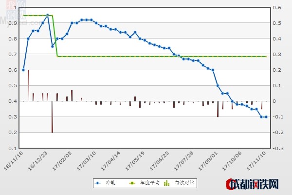 2017年11月10日南昌市場冷軋庫存情況進行調(diào)查統(tǒng)計,本周冷軋卷板庫存為0.3萬噸,較上周統(tǒng)計持平。