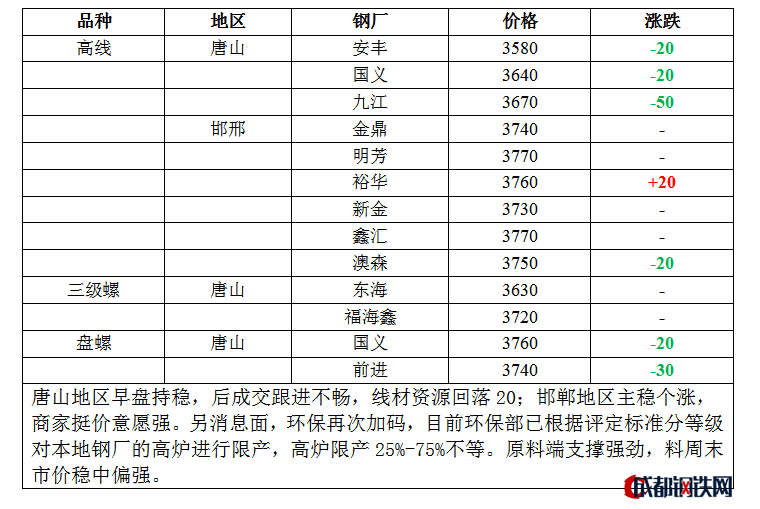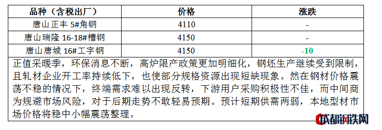 10日經(jīng)安230-275系4070降20含稅出廠,票減380;更多詳情請(qǐng)關(guān)注成都鋼鐵網(wǎng)鋼鐵