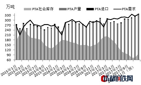 另一方面,2017年8月10日,環(huán)保部等五部明確規(guī)定除了工業(yè)源類再生聚酯能進(jìn)口外(占比較少),其他再生聚酯被列入禁止進(jìn)口行列,雖然該公告自2017年12月31日開始正式執(zhí)行,但目前已經(jīng)對(duì)再生聚酯進(jìn)口進(jìn)行了管控,預(yù)計(jì)全年再生聚酯進(jìn)口將減少70多萬噸,這將對(duì)原生聚酯需求轉(zhuǎn)移30萬―35萬噸。2018年之后,再生政策的大變革可能會(huì)對(duì)原生聚酯帶來150萬―170萬噸的需求增長。