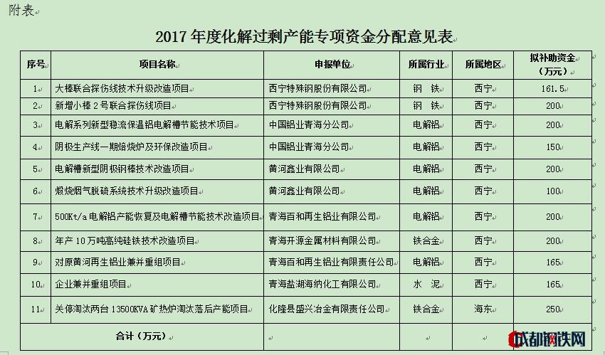 附件:青海省2017年度化解過剩產(chǎn)能專項資金分配意見表