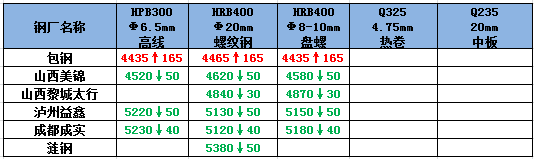 今日全國共有6家鋼廠發(fā)布調價信息,均對鋼材價格進行了調整,幅度在30-165元/噸。