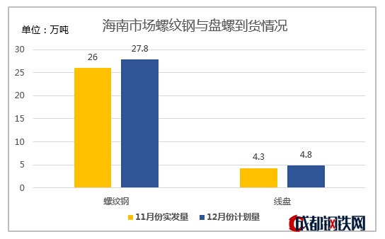 2、12月份海南地區(qū)建材計劃供應量32.6萬噸,其中螺紋鋼12月份計劃約27.8萬噸;環(huán)比11月份增加1.8萬噸,增幅在6.9%,線盤12月份計劃約4.8萬噸,環(huán)比11月份增加0.5萬噸,增幅在11%。