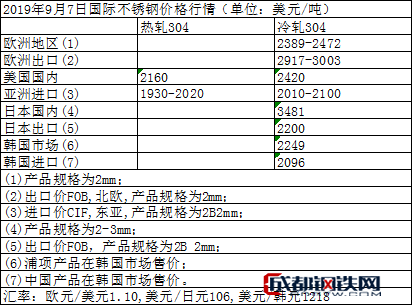 2019年9月7日國(guó)際不銹鋼價(jià)格行情