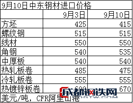 9月10日中東進(jìn)口鋼材價(jià)格