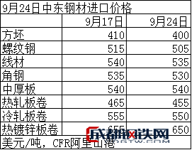 9月24日中東進口鋼材價格