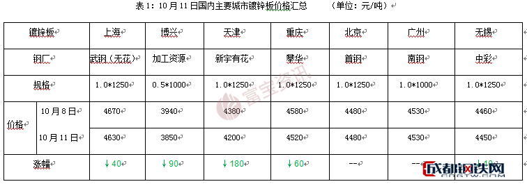 成都鋼鐵網(wǎng)資訊10月11日信息: