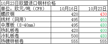 10月23日歐盟進口鋼材價格