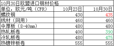 10月30日歐盟進(jìn)口鋼材價(jià)格