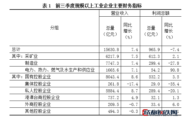 前三季度,全省規(guī)模以上工業(yè)企業(yè)實現(xiàn)利潤總額965.9億元,同比下降7.4%。