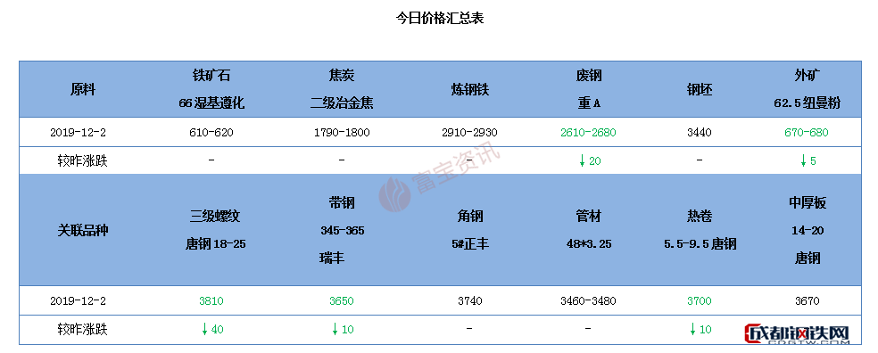 【唐山鋼市綜述】2日期螺開局拉升,疊加坯料廠商聯(lián)合挺價,市場信心尚可,今成品穩(wěn)中有漲,成交放量。從當前市場價格來看,商家未有冬儲跡象,階段性的需求難以支撐價格上漲,綜合來看,短期鋼市或保持震蕩調(diào)整局面,隨著今日原料端的支撐,料明堅挺。 今日焦點1、經(jīng)石家莊市氣象、生態(tài)環(huán)境部門研判會商,預(yù)計受冷空氣影響,未來幾天我市環(huán)境空氣質(zhì)量逐漸轉(zhuǎn)好。市重污染天氣應(yīng)急指揮部辦公室決定,12月2日8時解除重污染天氣Ⅱ應(yīng)急響應(yīng)。屆時,市主城區(qū)將恢復(fù)執(zhí)行常態(tài)化限行措施,限行時段和限行尾號與北京市保持一致。2、根據(jù)廊坊市人民政府辦公室通知,于2019年12月1日18時解除重污染天氣黃色預(yù)警并終止Ⅲ級應(yīng)急響應(yīng)。