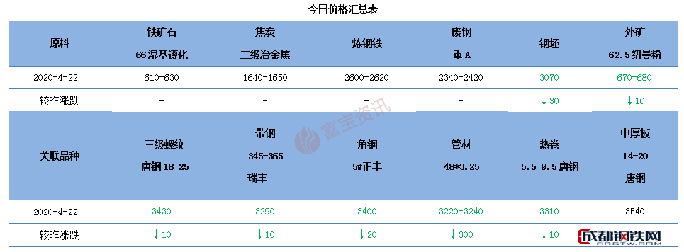 | 建材 | 22日唐山線螺市價(jià)主流下調(diào)10-20,現(xiàn)高線含稅價(jià):安豐3240跌20春興3290漲10;東海含稅價(jià)大螺3480小螺3550盤螺3430跌10;螺紋不含稅價(jià):玄龍3100福海鑫3100跌20。早盤市價(jià)走低,受期螺翻紅帶動(dòng),個(gè)別低位資源出貨好轉(zhuǎn)。 | 穩(wěn) |