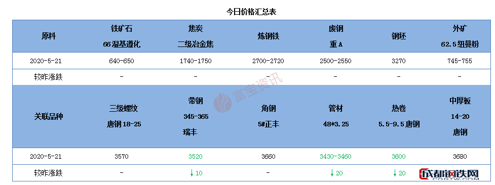 | 建材 | 21日唐山線螺市價主穩(wěn)個降,現(xiàn)高線含稅價:安豐3470降20春興3520穩(wěn);東海含稅價大螺3630小螺3730盤螺3630穩(wěn);螺紋不含稅價:玄龍3290穩(wěn)福海鑫3280穩(wěn)。市場觀望情緒增加,盤中交投表現(xiàn)冷清,商家多優(yōu)惠出貨為主。 | 弱穩(wěn) |
